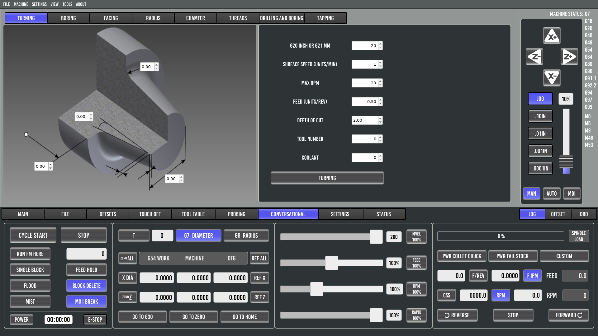 Integration zahlreicher LinuxCNC-Zyklen (Drehen, Gewinde, Bohren etc.)