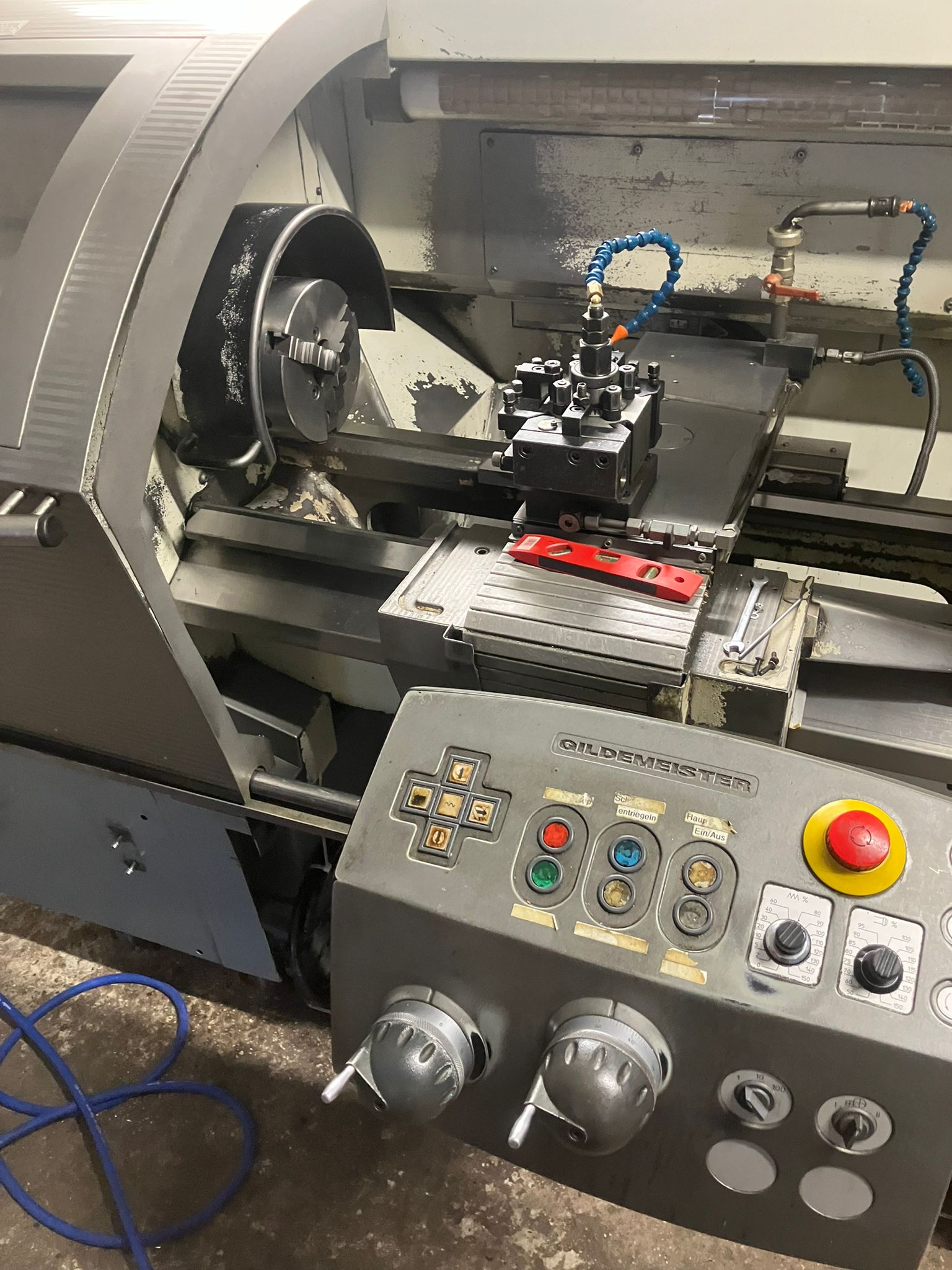 Aktuell modernisieren wir eine Gildemeister NEF 320, ursprünglich ausgestattet mit einer Heidenhain CNC Pilot 3110 Steuerung. Die Maschine überzeugt mechanisch durch einen sehr guten Zustand – ein idealer Kandidat für ein wirtschaftliches Retrofit statt einer kostenintensiven Neuanschaffung.